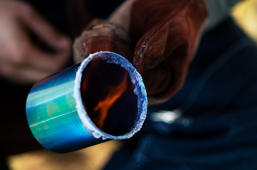 First, add the sugar to the edge of the mug by rimming some sugar in a shallow bowl, dipping the mug in water or lime juice, and then immersing it in the sugar. Coat both sides of the rim evenly about half of an inch. Then, add the rum and triple sec to the mug, and carefully light it with a match (or Folding Torch, with Fireside Gloves, of course). Swirl the mug so the flame caramelizes the sugar on the rim. Wait until the sugar begins to melt and turns a golden brown. Add the coffee liqueur and coffee, and top with the whipped cream and a dusting of nutmeg. Serve and enjoy!