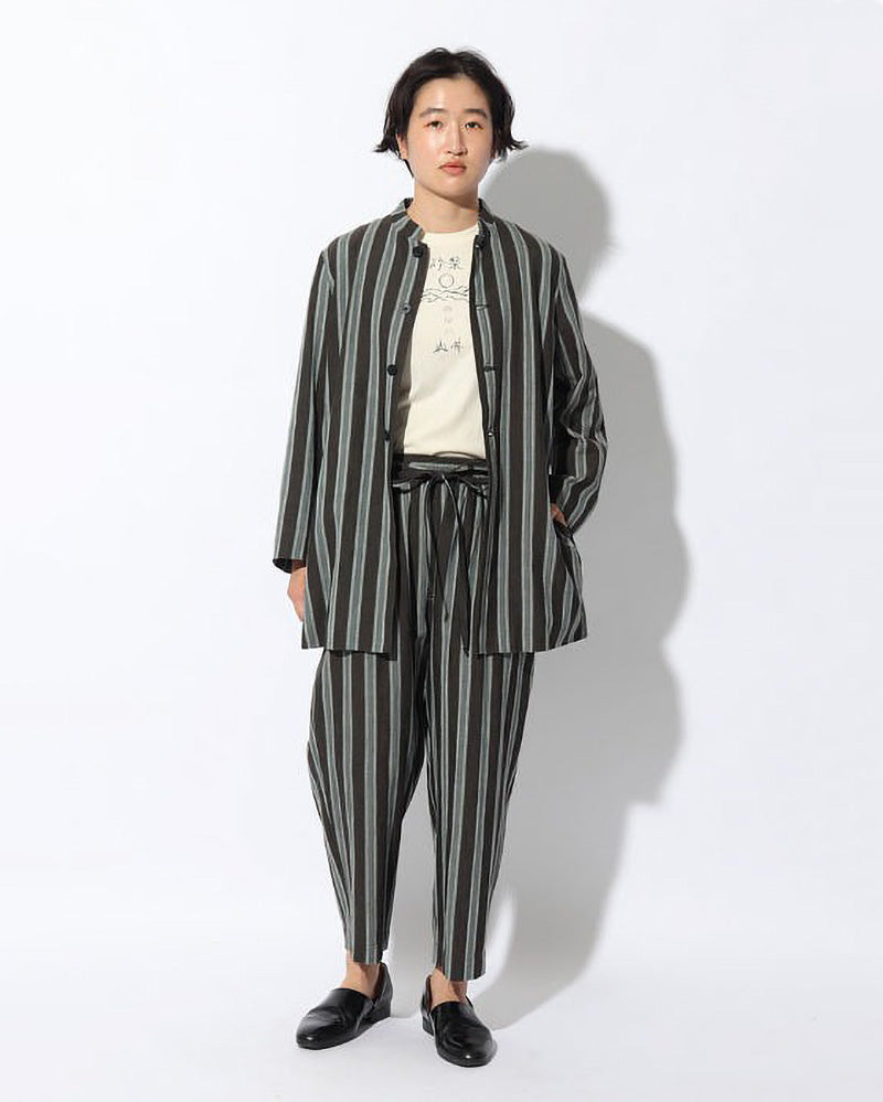 The Yamai series is designed in small batches using ancient, natural fabric construction and dye techniques. The collection celebrates traditional craftsmanship while deepening the relationship between the garment and the wearer, creating a bridge to the natural world.
