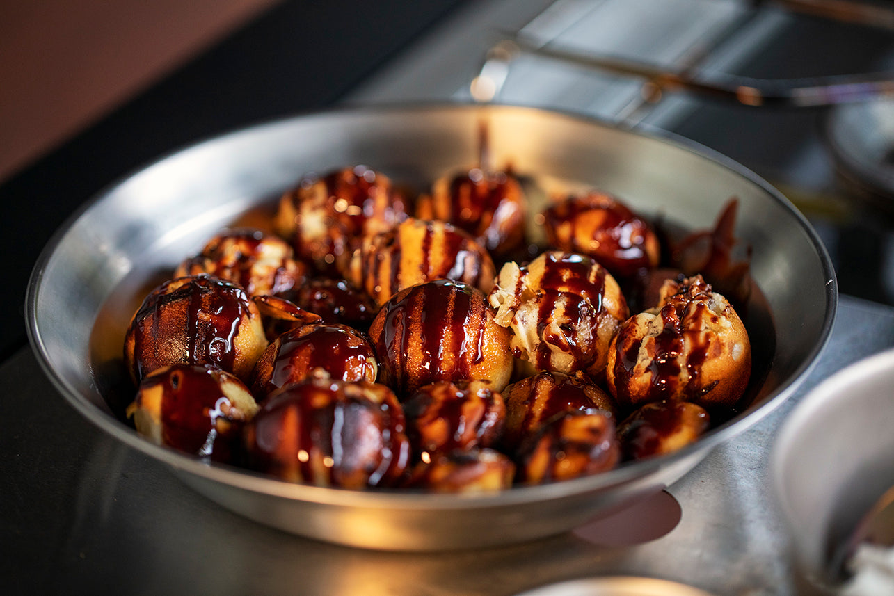 In a large bowl, use a blender to whip the egg whites until frothy. Then, add the flour, baking powder, salt, baking soda, sugar, egg yolks, melted butter, and buttermilk. Mix to combine. Heat the Takoyaki pan over the Grill Burner, then add oil to each cup in the pan. Fill each cup about halfway with batter. Once the batter starts to bubble around the edge, turn each ball quickly using the Titanium Chopsticks. Continue turning the balls to prevent burning until they are golden brown. Serve with your sweet topping of choice and enjoy!