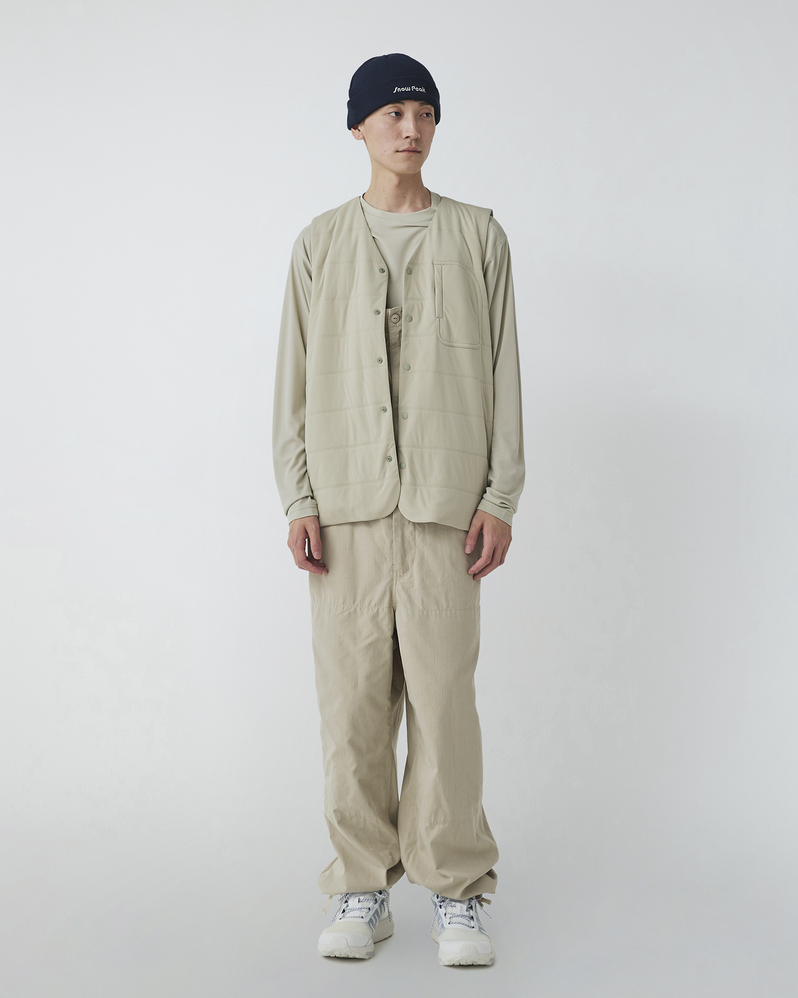 Seasonal partnerships with Mountain of Moods and Toned Trout offer activity-specific gear for snow sport and fishing enthusiasts, while footwear partnerships with global brands combine classic outdoor shoe designs with Snow Peak materials and styling.